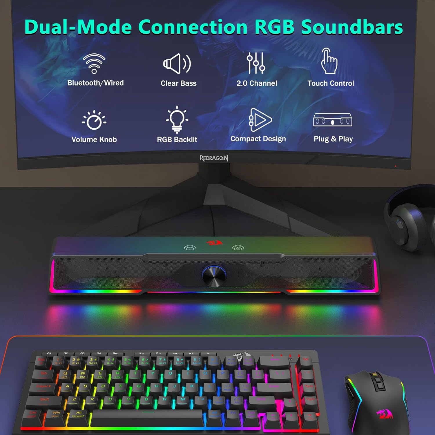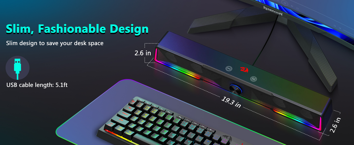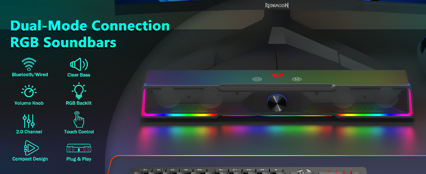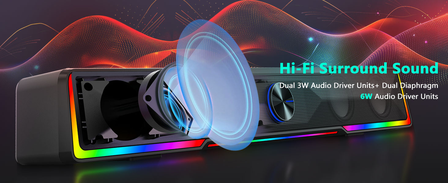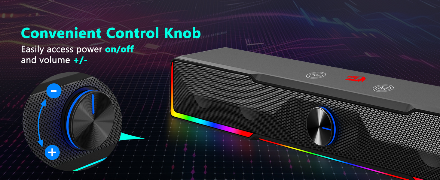 Space-Saving Soundbar Design Hindi tulad ng mga tradisyunal na speaker na sumasakop sa malalaking lugar sa magkabilang gilid ng monitor, ang Black GS516 Bluetooth/USB Wired Connection Soundbar Volume Knob Computer Speaker ay nagtatampok ng slim na istraktura ng soundbar na kumportableng umaangkop sa ilalim ng karamihan sa mga screen ng computer. Nakakatulong ang compact na disenyo na ito na mapanatili ang malinis at organisadong desk environment habang naghahatid pa rin ng mayaman at nakaka-engganyong audio.