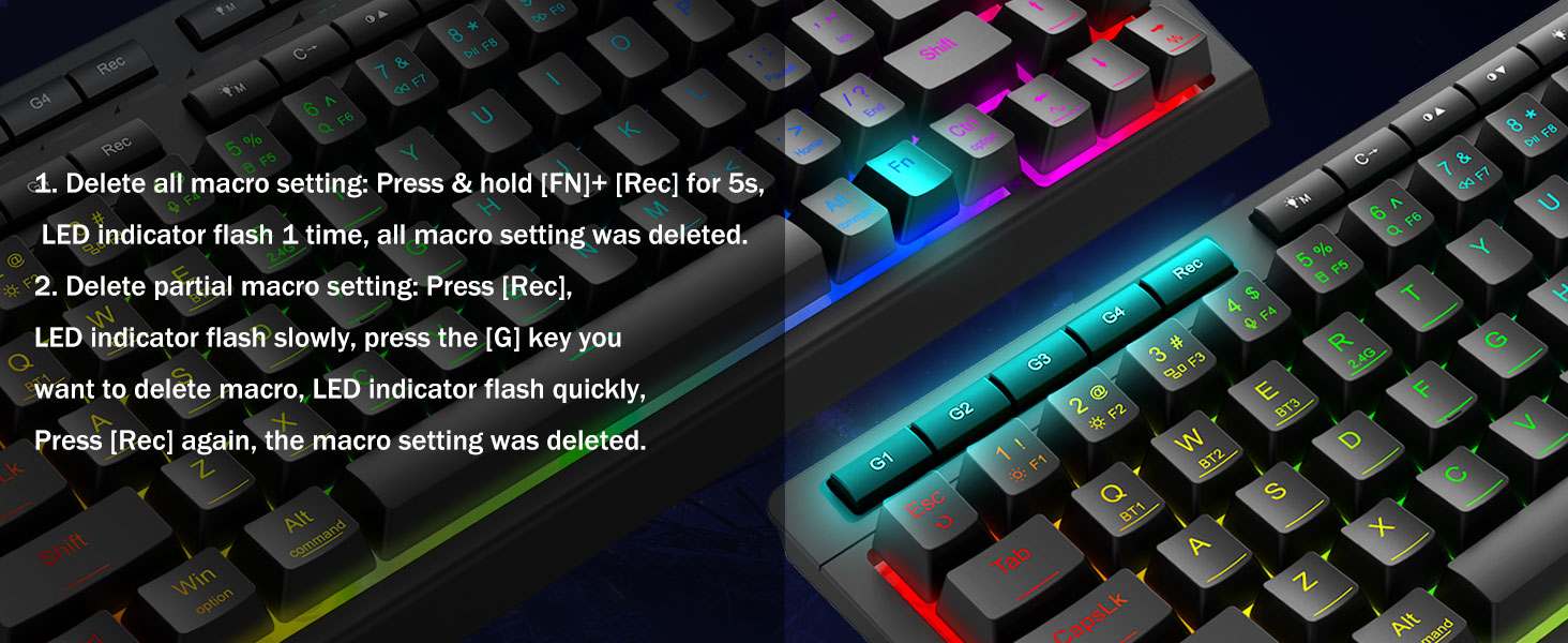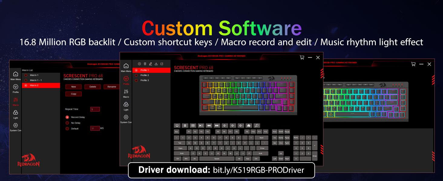 Napapasadyang macros, walang hirap na kontrol -Programa ang 4 na onboard macro key (G1-G4) agad-walang kinakailangang software. Magtala ng mga kumplikadong combos para sa paglalaro, mga shortcut para sa pagiging produktibo, o mga utos ng media. Muling tukuyin ang iyong daloy ng trabaho sa ilang segundo. Maaari ka ring gumamit ng software upang ipasadya ang mga pag -andar, lumikha ng macros, ayusin ang mga ilaw ng RGB, at magtakda ng mga shortcut. Link ng software: bit.ly/K524RGB-Prodriver