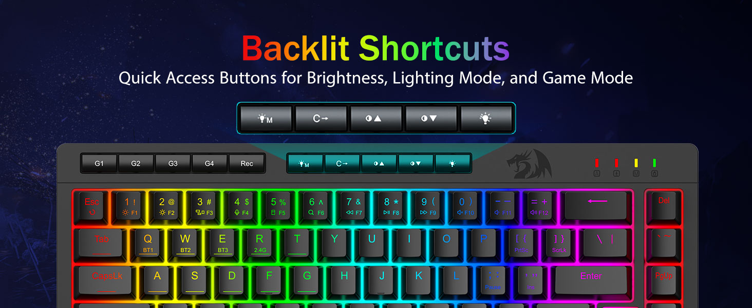 PRO -grade gaming Performance & Dedicated Backlit Controls -Nagtatampok ng mga anti-ghost key (mga susi na may isang underscore) na nagbibigay-daan sa 26 na mga susi na gumana nang sabay-sabay para sa mabilis at tumpak na mga tugon ng laro sa paraang iyong inilaan. Mabilis na mga pindutan ng pag -access para sa ningning, mode ng pag -iilaw, at mode ng laro upang mabilis na ayusin ang ningning, mga profile ng ilaw, at paganahin ang mode ng laro na may touch ng isang butto.