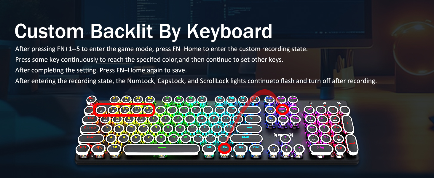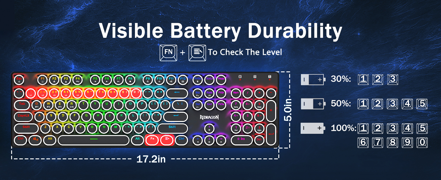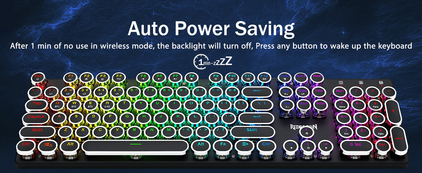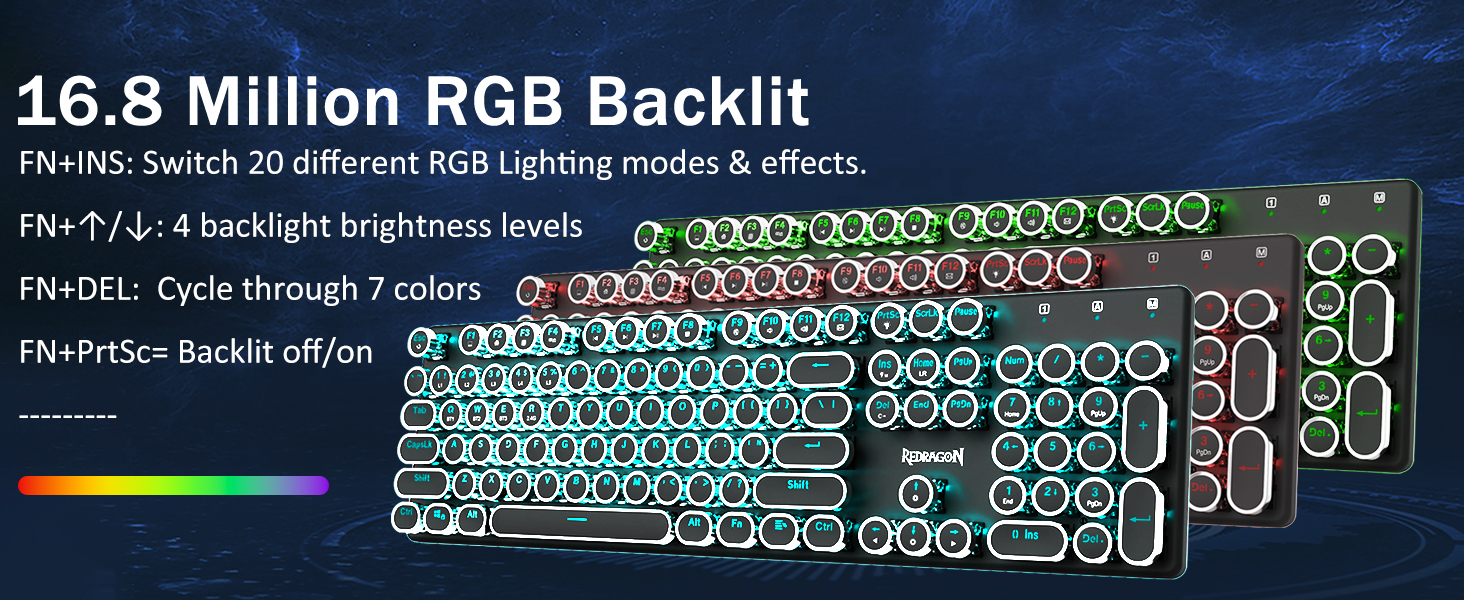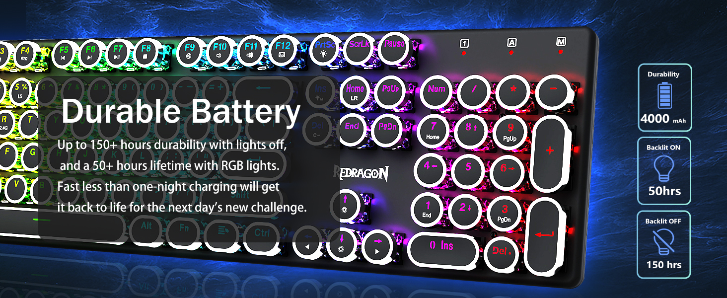 𝗥𝗲𝘁𝗿𝗼 𝗧𝘆𝗽𝗲𝘄𝗿𝗶𝘁𝗲𝗿 𝗦𝘁𝘆𝗹𝗲 𝘄𝗶𝘁𝗵 𝗠𝗲𝗰𝗵𝗮𝗻𝗶𝗰𝗮𝗹 𝗞𝗲𝘆𝘀 -Nag -aalok ang Redragon Mechanical Blue switch ng daluyan na paglaban, naririnig na pag -click sa Clacky Sound & Tactile Feedback, ay nagbibigay ng tumutugon at tumpak na kapaligiran sa paglalaro at pagganap. Ang Vintage Steampunk Keyboard Round Keycaps ay mukhang isang klasikal na makinilya, ay nagdadala sa iyo ng komportableng pag -type ng pakiramdam at matatag na pag -click sa touch.