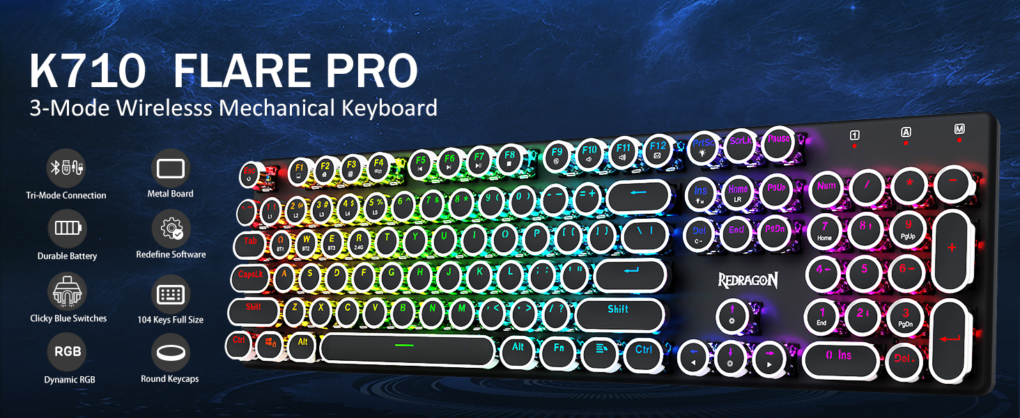 𝗥𝗲𝘁𝗿𝗼 𝗧𝘆𝗽𝗲𝘄𝗿𝗶𝘁𝗲𝗿 𝗦𝘁𝘆𝗹𝗲 𝘄𝗶𝘁𝗵 𝗠𝗲𝗰𝗵𝗮𝗻𝗶𝗰𝗮𝗹 𝗞𝗲𝘆𝘀 -Dalubhasa sa Chuangquan ang paggawa ng Redragon Black K710 wireless typewriter style mechanical gaming keyboard, inhinyero para sa mga namamahagi na naghahanap ng mga produktong standout. Pinagsasama ng keyboard na ito ang isang disenyo ng inspirasyong retro na may matibay na panel ng metal at 104-key na teknolohiya ng anti-ghosting, na tinitiyak ang katumpakan sa panahon ng matinding gameplay. Ang mga mekanikal na asul na switch nito ay nagbibigay ng tumutugon na feedback na feedback, habang ang mga dynamic na backlight ng RGB ay nagpapabuti sa paglulubog. Sa maraming nalalaman Bluetooth, 2.4GHz wireless, at wired na koneksyon, ang K710 ay umaangkop sa maraming mga aparato nang walang kahirap -hirap. Sinuportahan ng napapasadyang software para sa macros at mga epekto ng pag -iilaw, ito ay tumutugma sa parehong mga manlalaro at propesyonal. Bilang isang pinagkakatiwalaang mapagkukunan ng pabrika, ginagarantiyahan ng Chuangquan ang mahigpit na kontrol ng kalidad, presyo na epektibo, at nababaluktot na pagpapasadya para sa mga kasosyo sa pakyawan sa buong mundo.