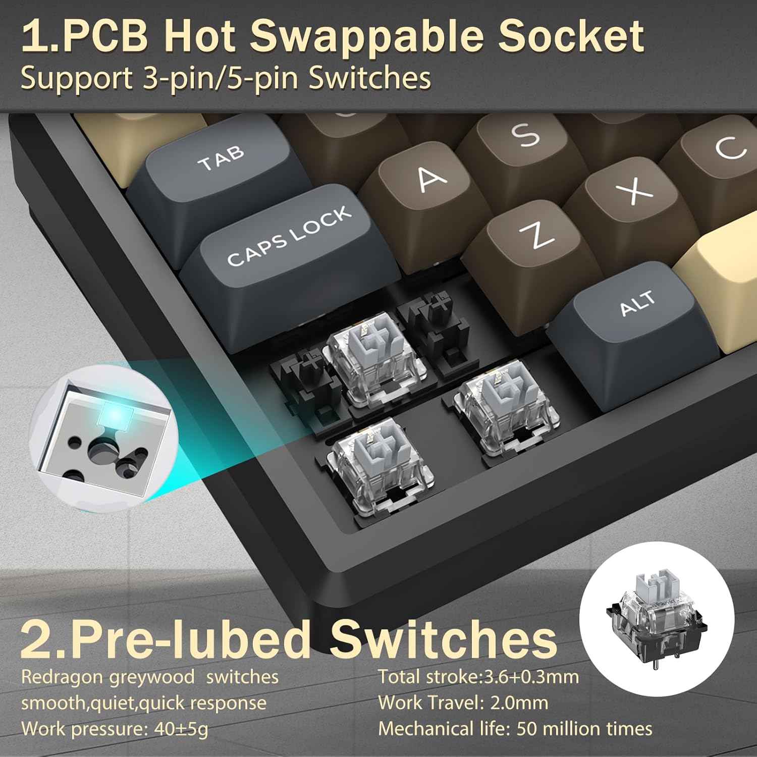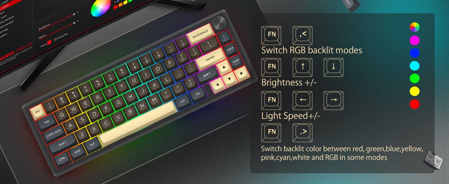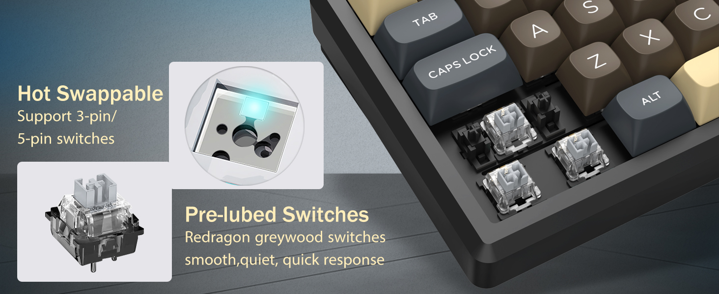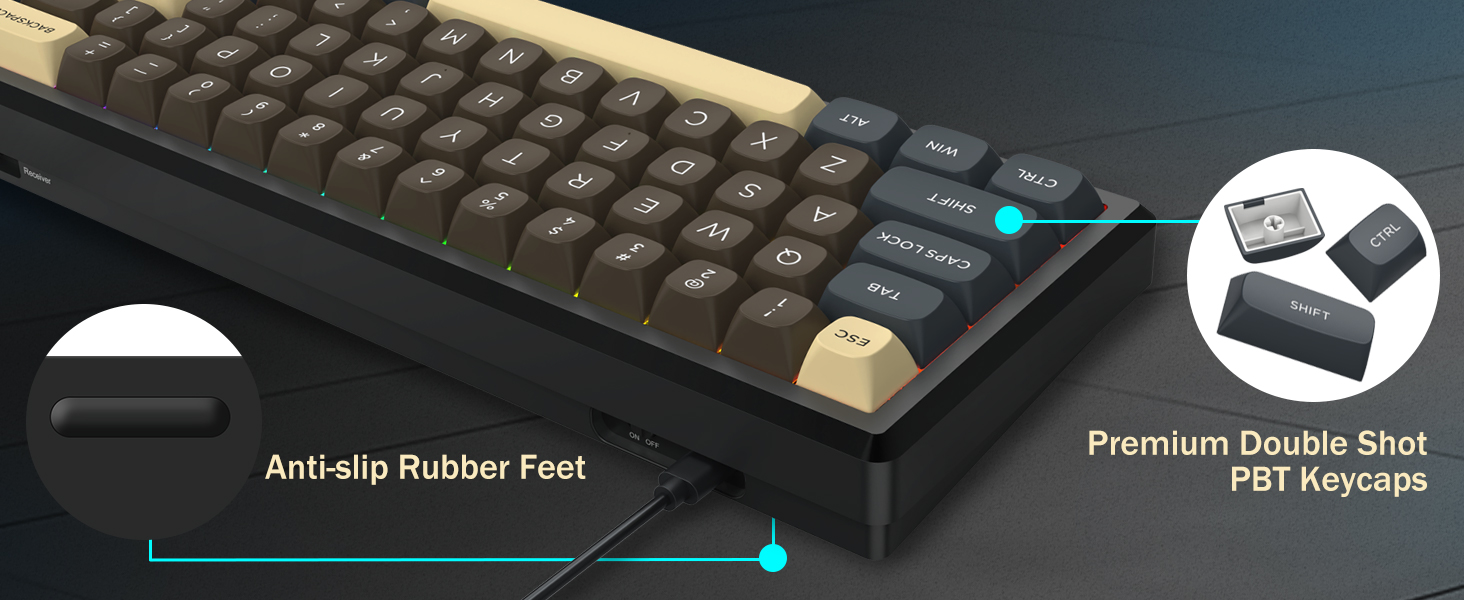 Sa 60% na layout nito, inaalis ng keyboard na ito ang mga hindi mahahalagang key habang pinapanatili ang pangunahing functionality sa pamamagitan ng mga kumbinasyon ng key. Nakakatulong ang disenyong ito na bawasan ang kalat ng mesa at nagbibigay ng mas maraming puwang para sa paggalaw ng mouse, na ginagawa itong angkop para sa parehong mga kapaligiran sa paglalaro at pagiging produktibo.
