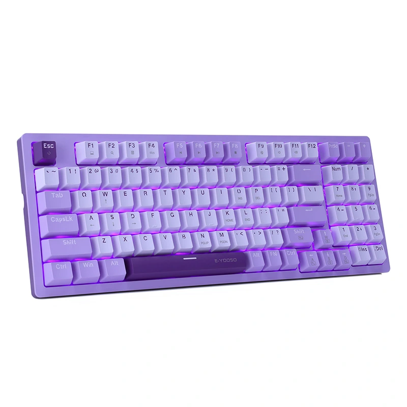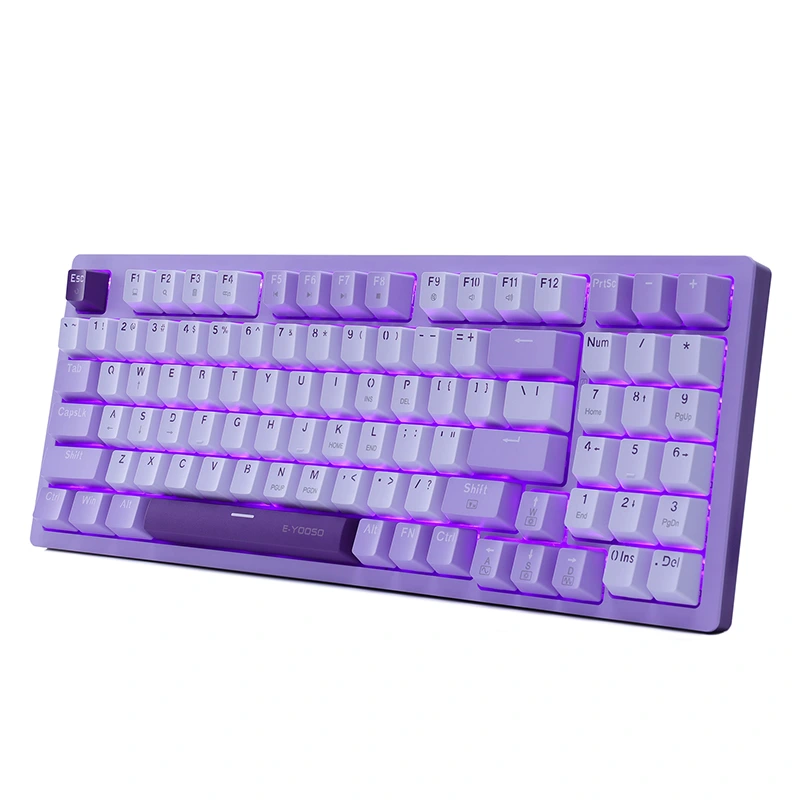 ❤ Mga Puti at Lila na Keycap ▶ Binuo mula sa natatangi at mataas na kalidad na matibay na Double-shot na mga keycap, Ang mekanikal na keyboard na ito ay may mahusay na karanasan sa pagpindot at mahabang oras ng paghahatid. Ang mga makukulay na keycap ay maaaring magdala ng mas kaaya-ayang mood sa panahon ng mga laro o trabaho, palamutihan ang iyong espasyo at pagandahin ang iyong buhay.