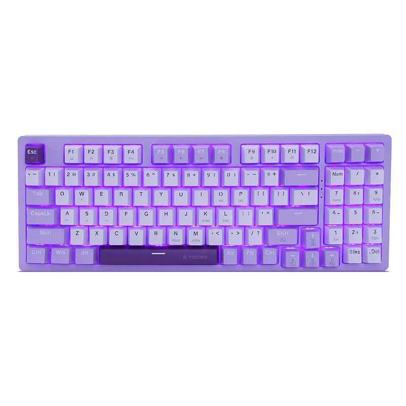 ❤ Purple LED Backlit ▶ Preset 10 lighting modes, 5 backlight brightness level, breathing speed. Ang mga double shot na keycap ng precision engineered ay hindi kailanman kumukupas. Maaaring patayin ang ilaw.