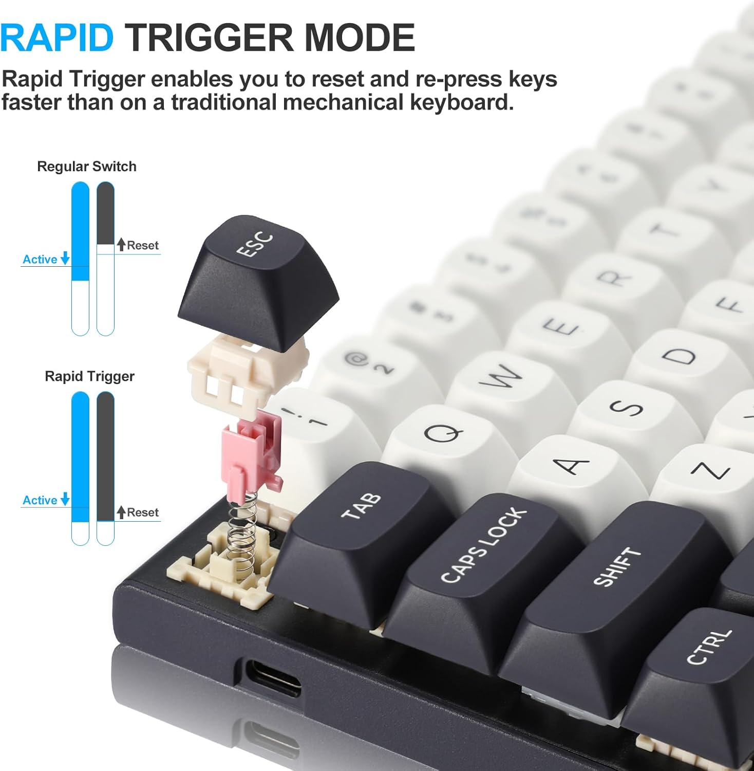 Puti/Asul-Itim na K701 Rapid Trigger 60% Wired Magnetic Switch Mechanical Gaming Keyboard