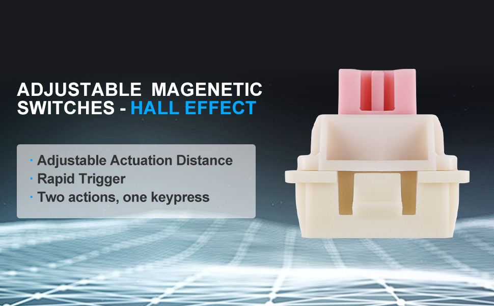 Gumagamit ang mga magnetic switch ng Hall effect sensor para makita ang pangunahing paggalaw, na nagbibigay ng mga adjustable na actuation point at pare-parehong pagkilala sa input. Hindi tulad ng mga tradisyunal na mechanical switch, binabawasan ng teknolohiyang ito ang pisikal na pagsusuot at tinitiyak ang pangmatagalang katatagan.