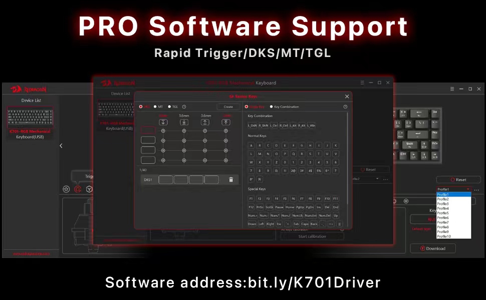 Ang White/Blue-Black K701 Rapid Trigger 60% Wired Magnetic Switch Mechanical Gaming Keyboard ay idinisenyo para sa mga user na inuuna ang katumpakan, bilis, at isang compact form factor. Ang kumbinasyon ng teknolohiyang magnetic switch, mabilis na pag-andar ng pag-trigger, at matibay na konstruksyon ay ginagawa itong maaasahang opsyon para sa parehong paglalaro at pagiging produktibo.