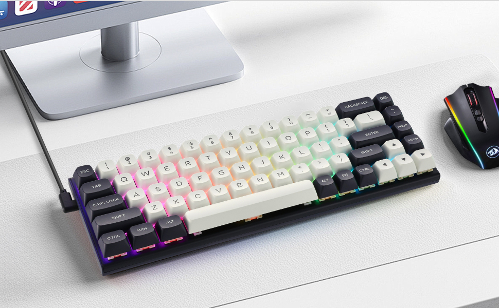 Inaalis ng 60% na layout ang function row, navigation cluster, at numeric keypad, na nagreresulta sa mas maliit na footprint. Ang disenyong ito ay nagbibigay ng mas maraming puwang para sa paggalaw ng mouse, na ginagawa itong perpekto para sa mga setup ng gaming na may limitadong espasyo sa desk.
