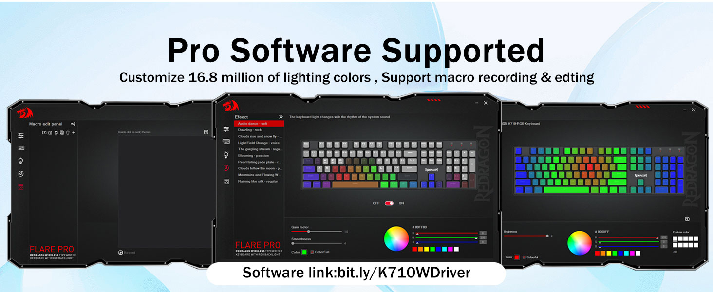 - Palawakin ang iyong mga pagpipilian gamit ang magagamit na software upang magdisenyo ng iyong sariling mga bagong mode at epekto. Macros na may iba't ibang mga keybindings o shortcut para sa mas mahusay na trabaho at gaming.software link: bit.ly/k710wdriver.