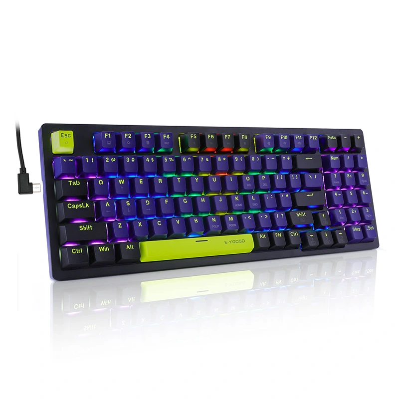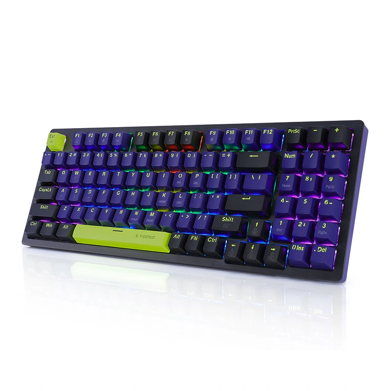 2. 2. Napakahusay na Red Switch at bule Switch : Gumagamit ang E-OOSO mechanical keyboard ng rRed Switch at bule Switch , 50 milyong keystroke habang-buhay, 2.0mm Distansya sa actuation, 45g actuation force 3. Hot-swappable at double Injection Keycap: Hot-swap Binibigyang-daan ka ng PCB na malayang palitan ang 3 pin na switch nang walang isyu sa paghihinang